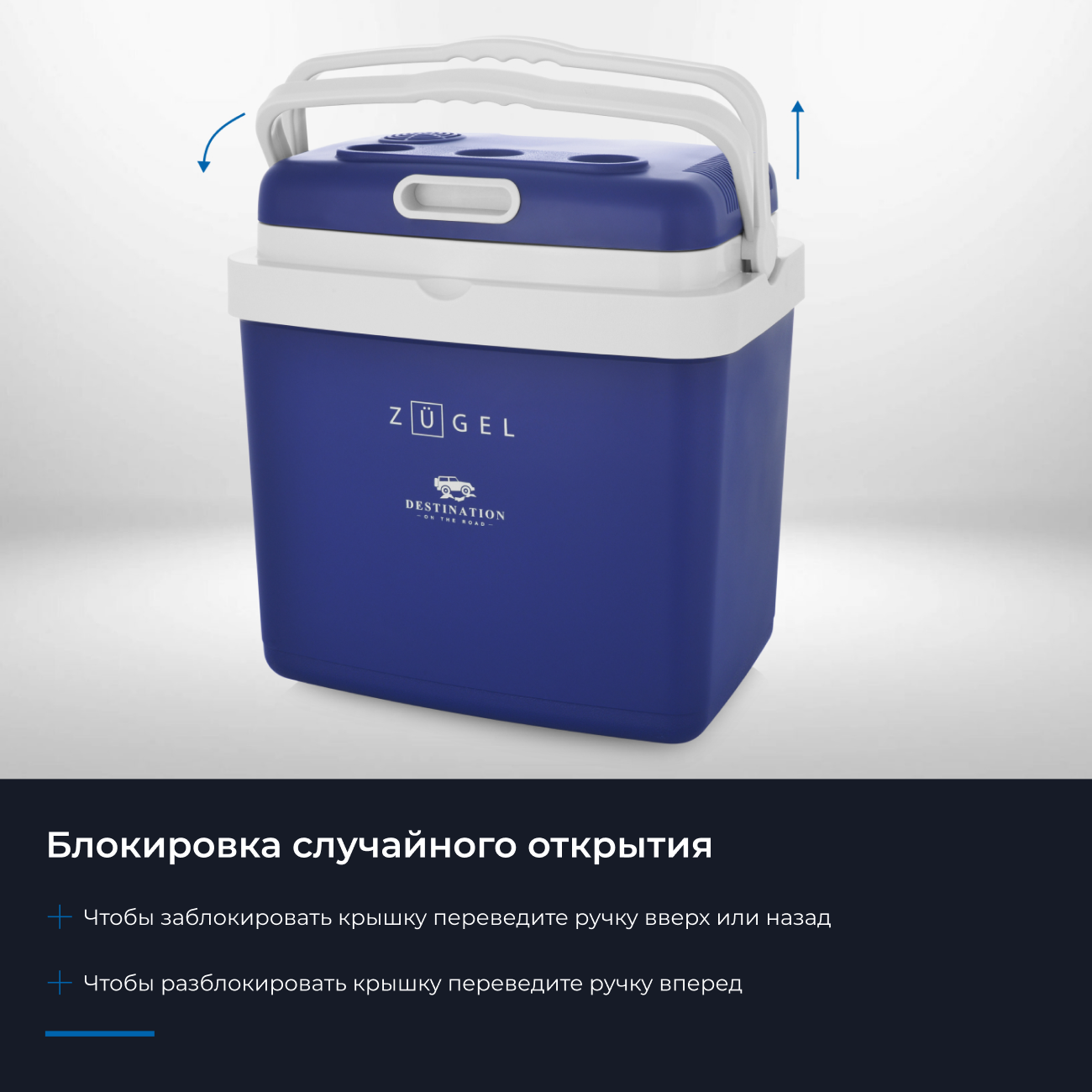 | Дополнительная информация | • Экологически безопасный: работает без компрессора и хладагента • Компактный и портативный: удобная ручка для переноски и автомобильный кабель питания в комплекте • Цвет: синий |