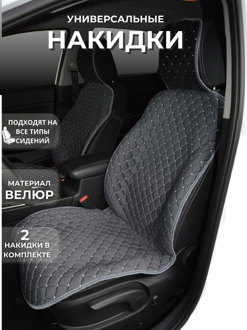 Купить MELKUMYANPRIDE/ Универсальные чехлы накидки на передние сидения из велюра 2шт. Модель Адель.Серый/белая строчка