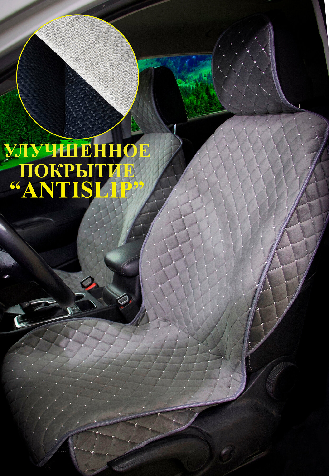 MELKUMYANPRIDE/ Универсальные чехлы накидки на передние сидения из велюра 2шт. Модель Адель.Серый/белая строчка