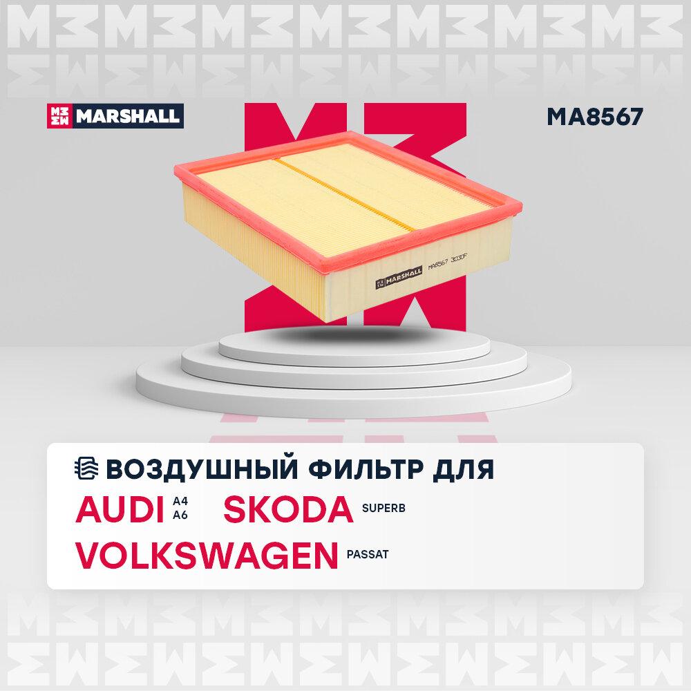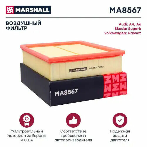 Фильтр воздушный MARSHALL MA8567 для Audi A4 (8D/B5), Audi A6 (4B/C5), Skoda Superb I (3U), VW Passat (3B) // кросс-номер MANN C 26 168