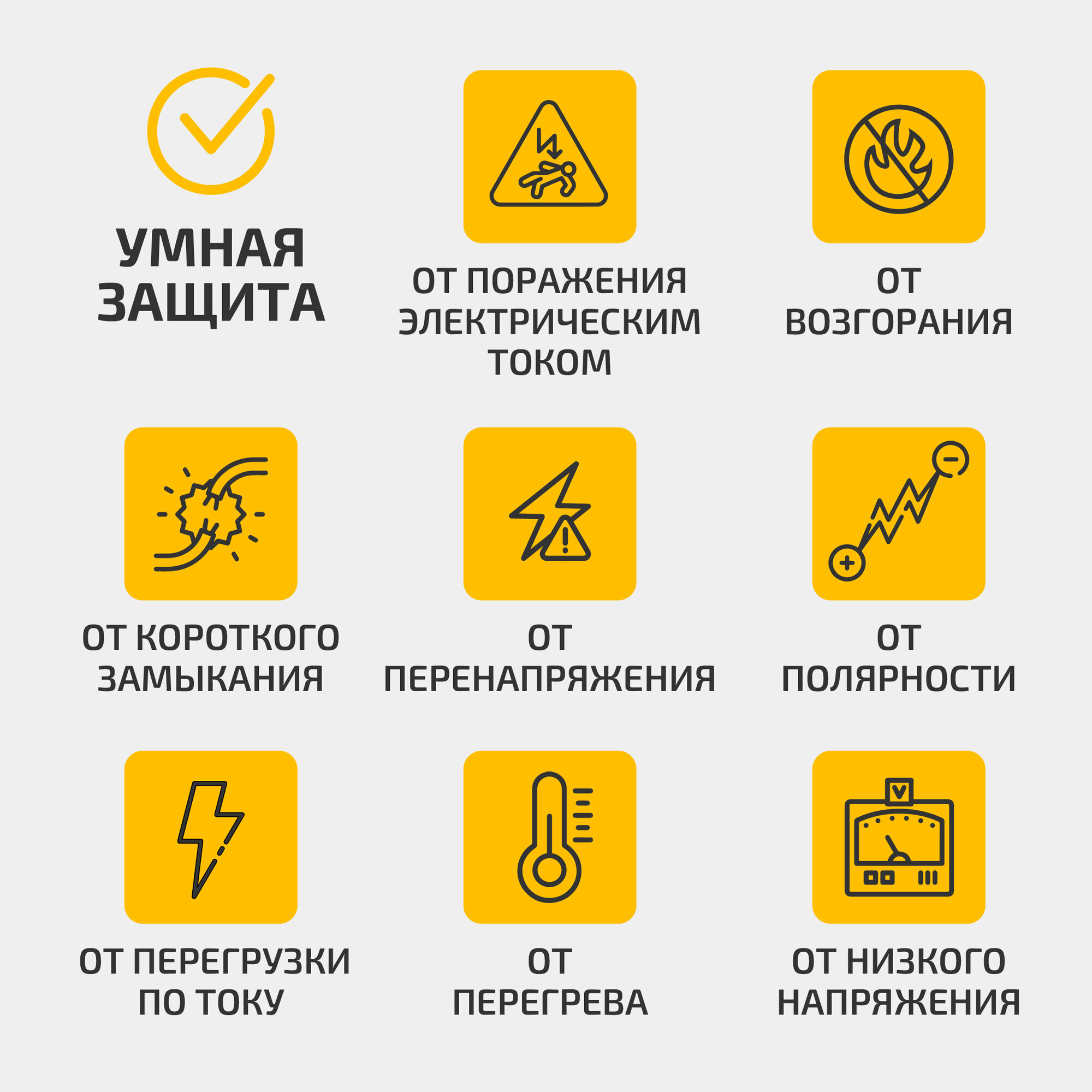 | Функции | автоматическое отключение зарядки / подходит для AGM/GEL аккумуляторов / режим зимней зарядки |