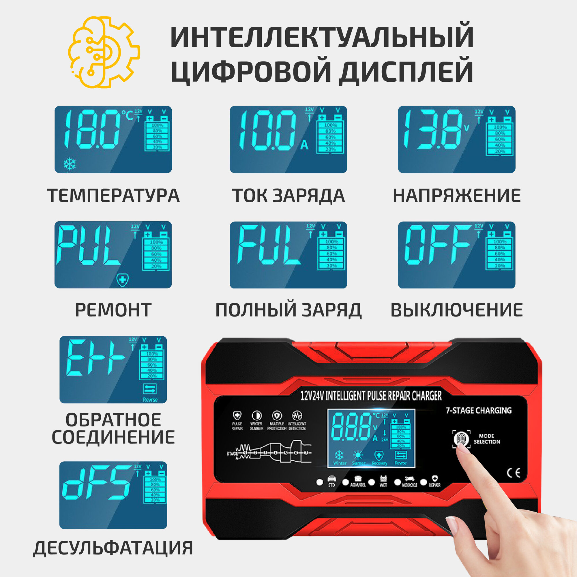Зарядное устройство для аккумулятора RJ Tianye, 12-24В, 5А, 2-150Ач, с функцией восстановления интересное: