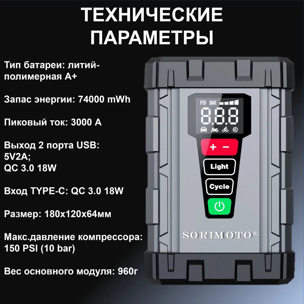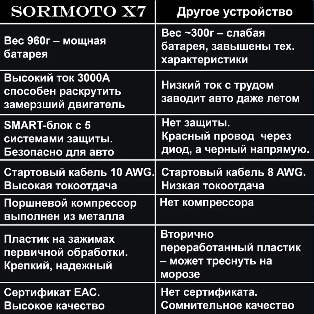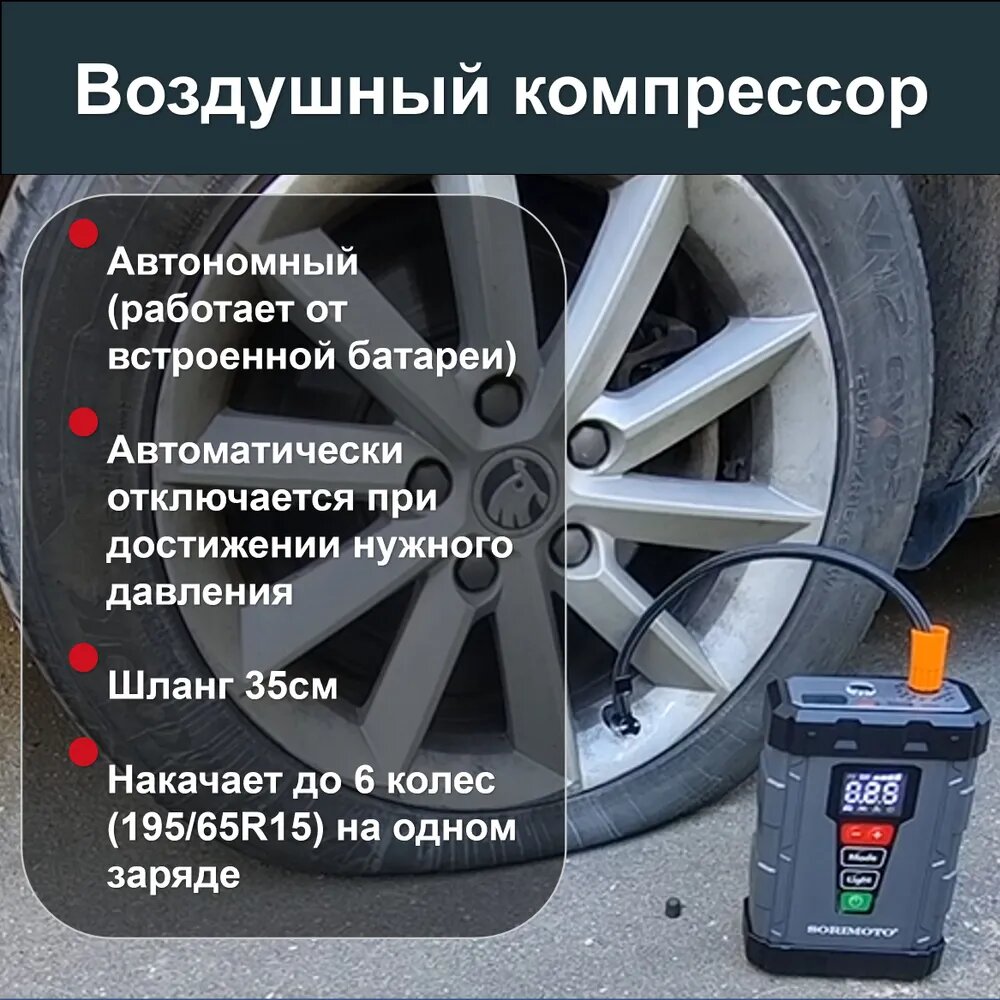 Пусковое устройство для автомобиля с компрессором SORIMOTO X7 интересное: