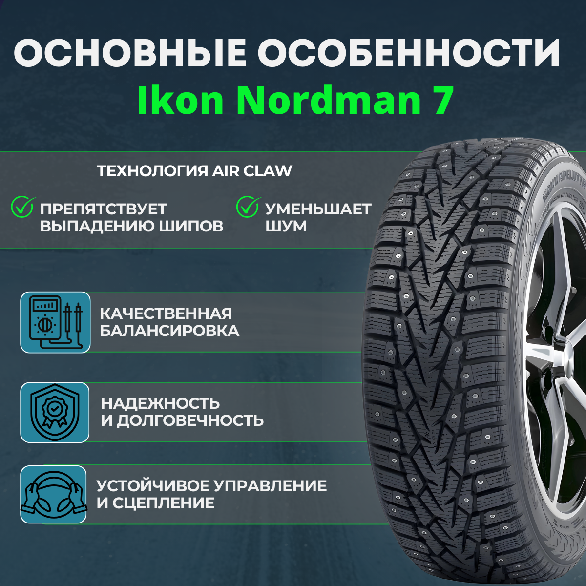 Шина Ikon Tyres(Айкон Тайерес) Nordman 7 SUV 255/60 R18 112T зимняя автомобильная шипованная