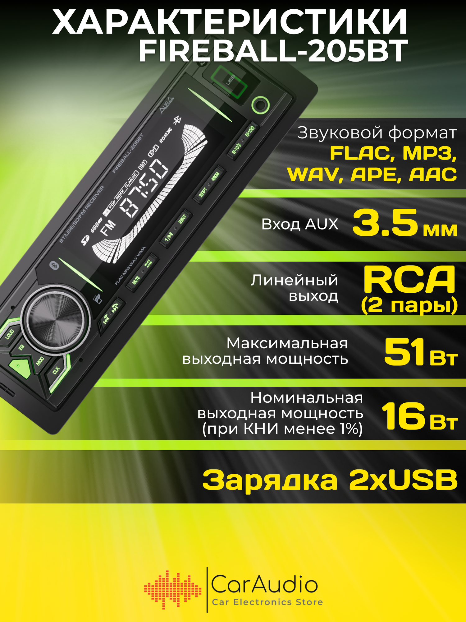 Автомагнитола AurA FIREBALL-205BT интересное: