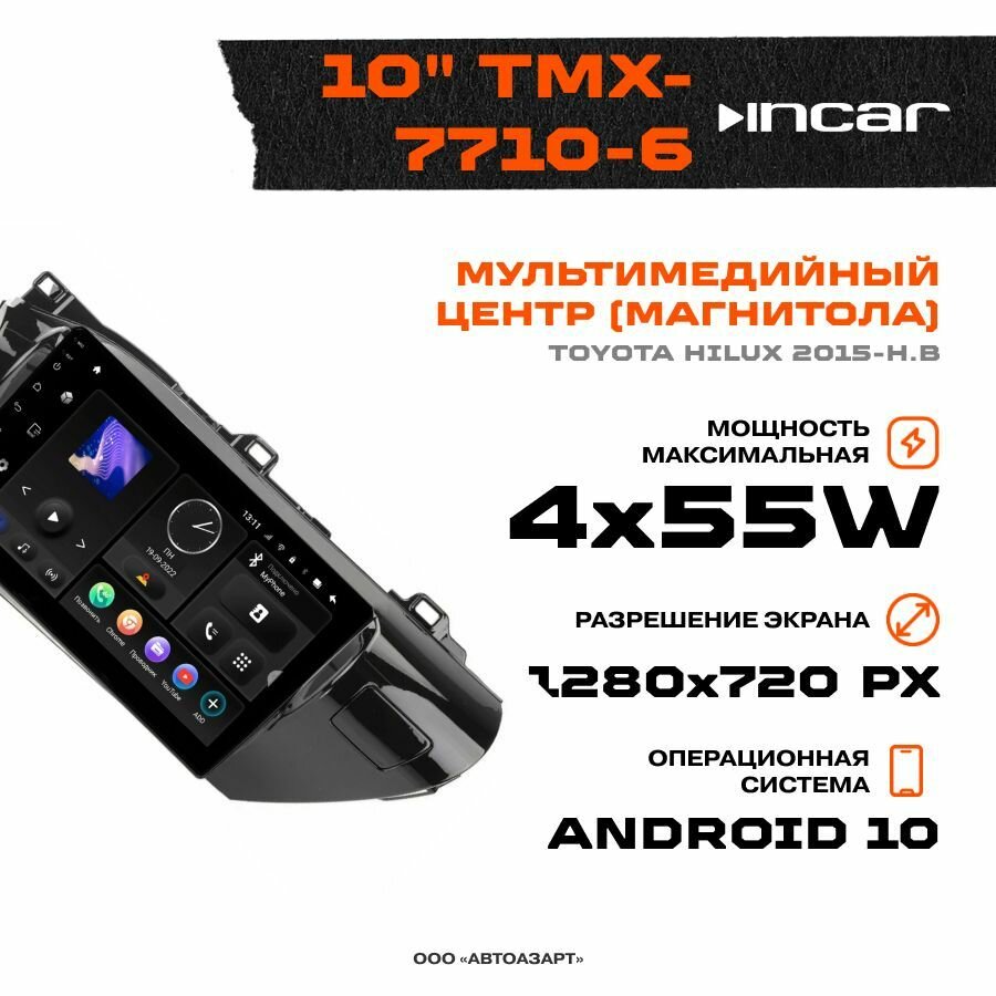 Автомагнитола Incar TMX-7710-6 10 дюймов / Android 10 / 1280x720 / Wi-Fi / DSP / 6+128Gb