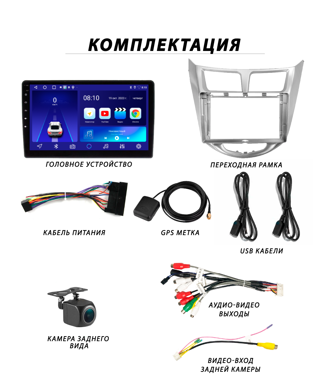 Магнитола Hyundai Solaris 1 (2010-2017) 4Гб+64Гб/серебристо-черная/DSP/Android/Carplay/кулер/Wi-Fi/Bluetooth