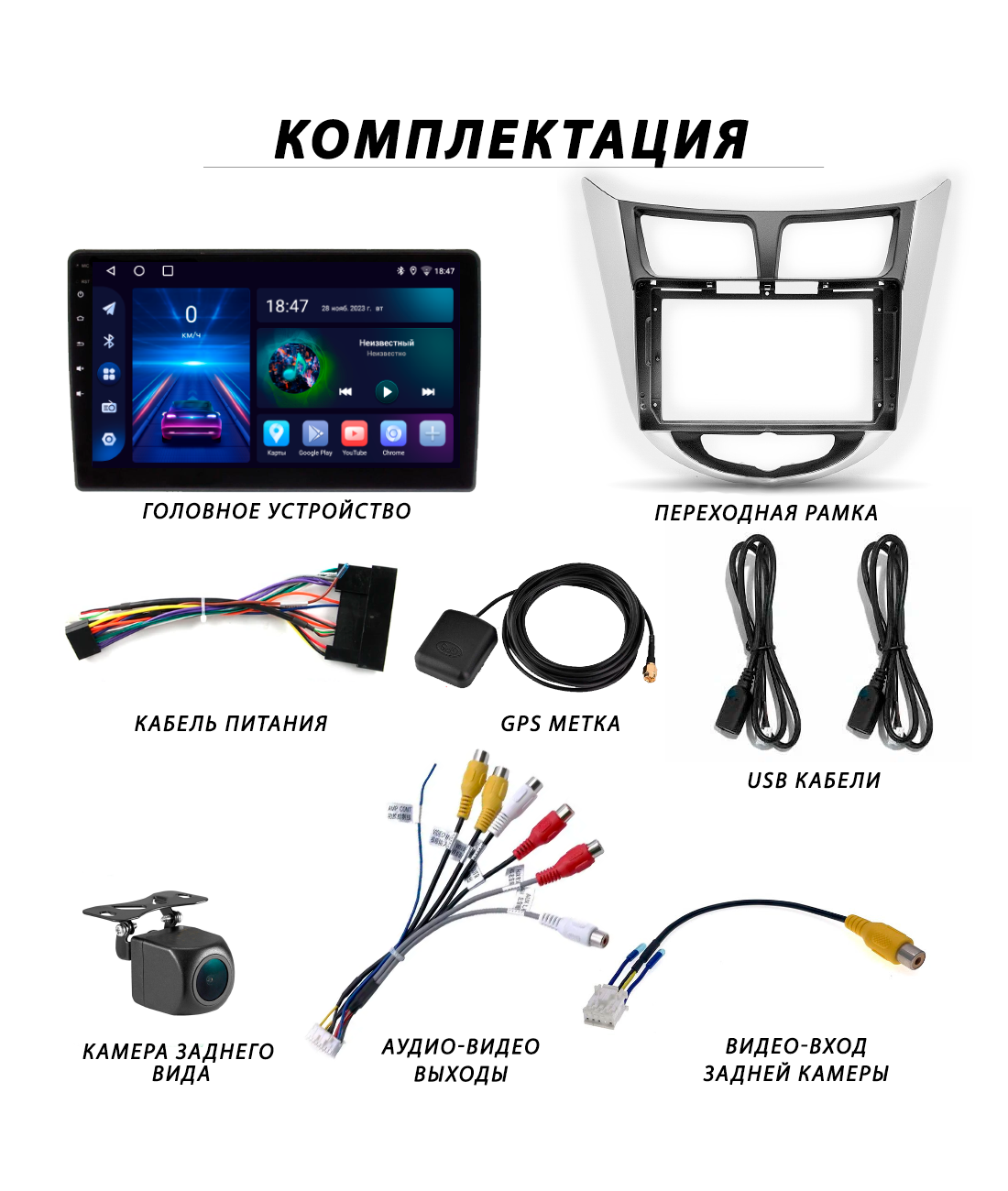 Магнитола Hyundai Solaris 1 (2010-2017) 4Гб+64Гб/серебристо-черная/DSP/Android/Carplay/кулер/Wi-Fi/Bluetooth