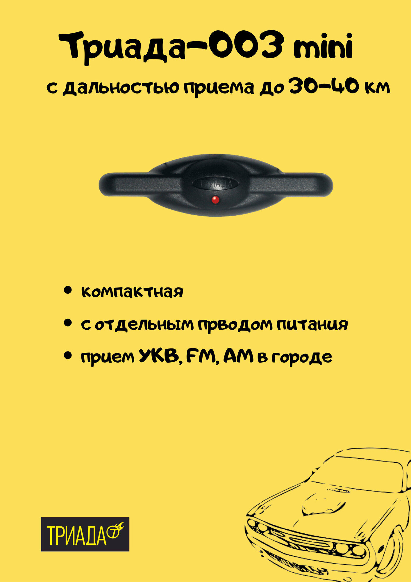 Антенна салонная в автомобиль Триада-003 Mini активная всеволновая для приема радио интересное: