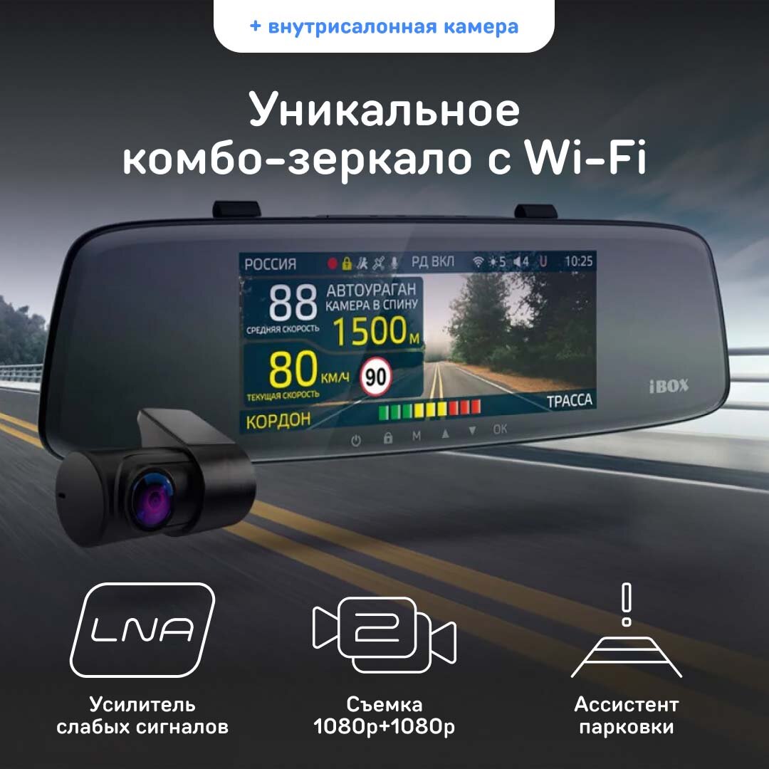 СохранитьВидеорегистратор-зеркало с радар-детектором iBOX Range LaserVision WiFi Signature Dual + Внутрисалонная камера FHD4 интересное: