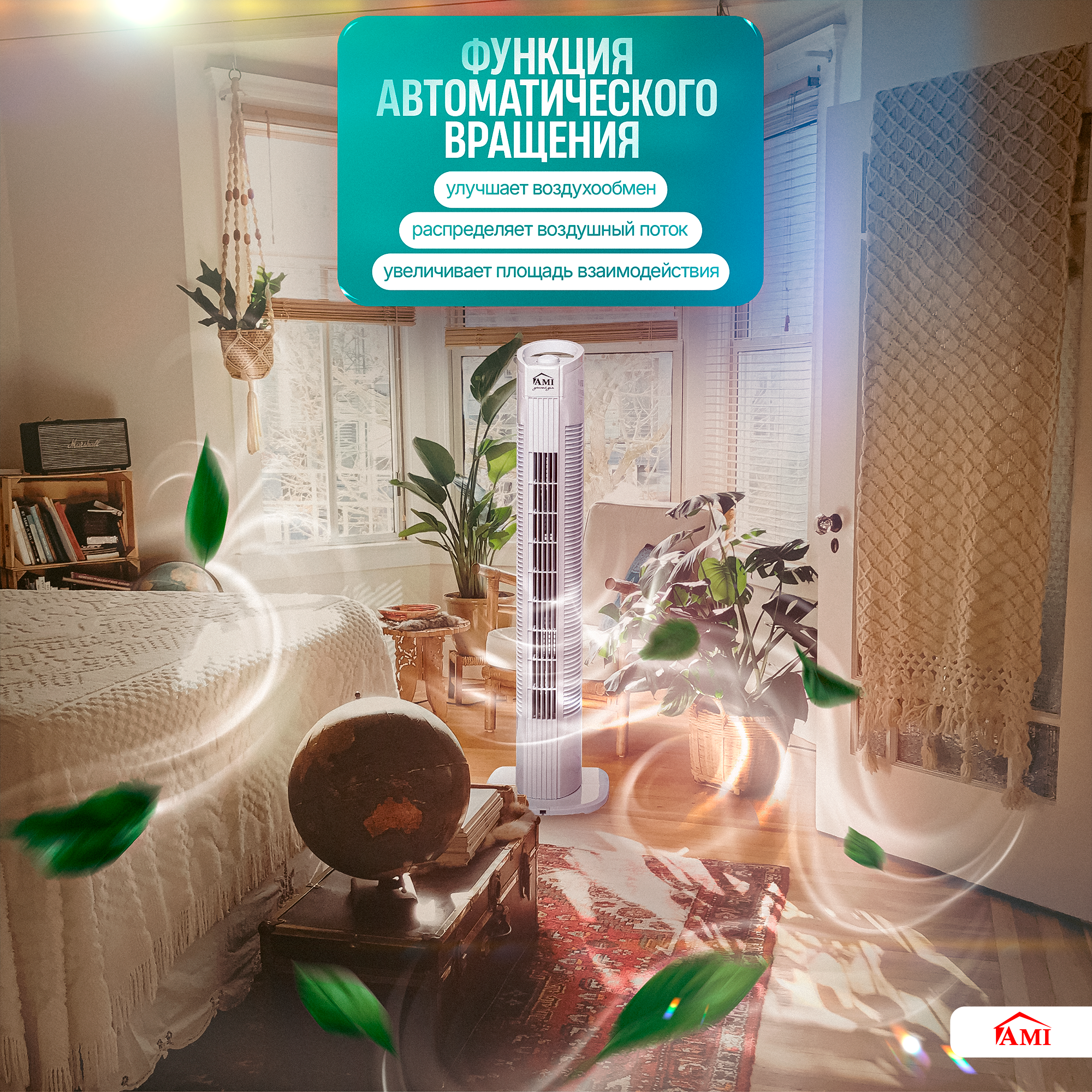 Вентилятор напольный колонный, поворотный вентилятор настольный, белый, Ами Мебель интересное: