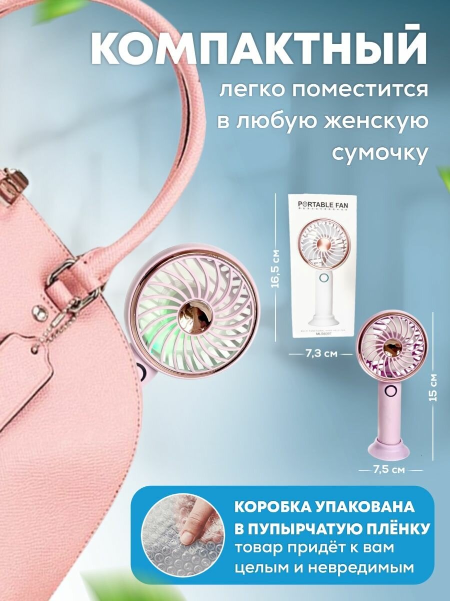 Портативный ручной USB вентилятор Meilisoon с тремя скоростями и подсветкой розовый