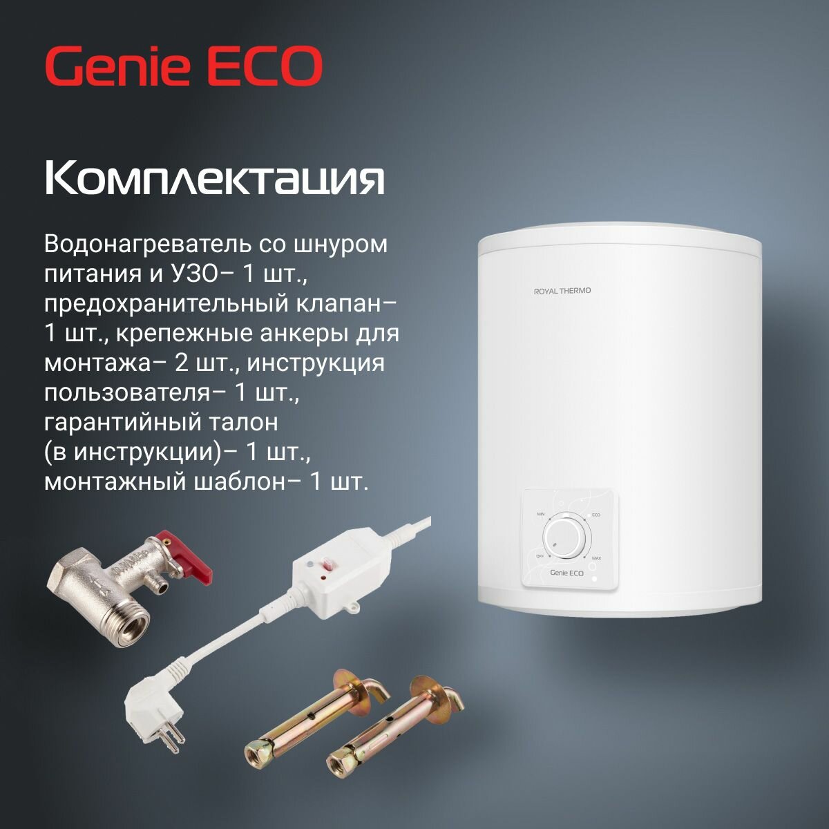 | Комплектация | Водонагреватель накопительный Royal Thermo RWH 10 Genie ECO U |