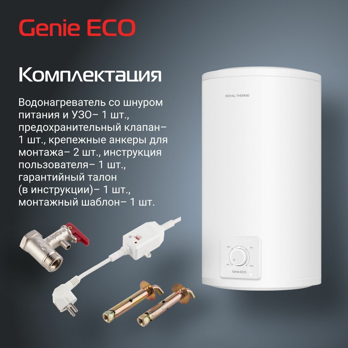 | Комплектация | Водонагреватель накопительный Royal Thermo RWH 10 Genie ECO U |