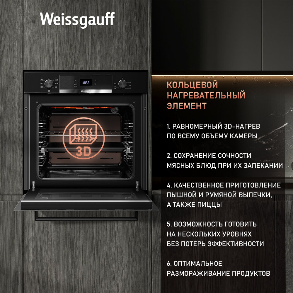 Духовой шкаф Weissgauff EOV 766 PDB конвекция, двойное стекло дверцы, сенсорное управление интересное: