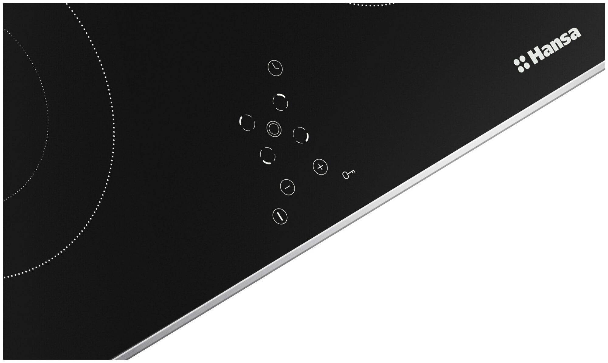 Электрическая варочная панель Hansa BHCI66708, встраиваемая, 60 см, быстрый нагрев за 10 сек., автоматика закипания, таймер автоматического отключения, стеклокерамика с сенсорным управлением
