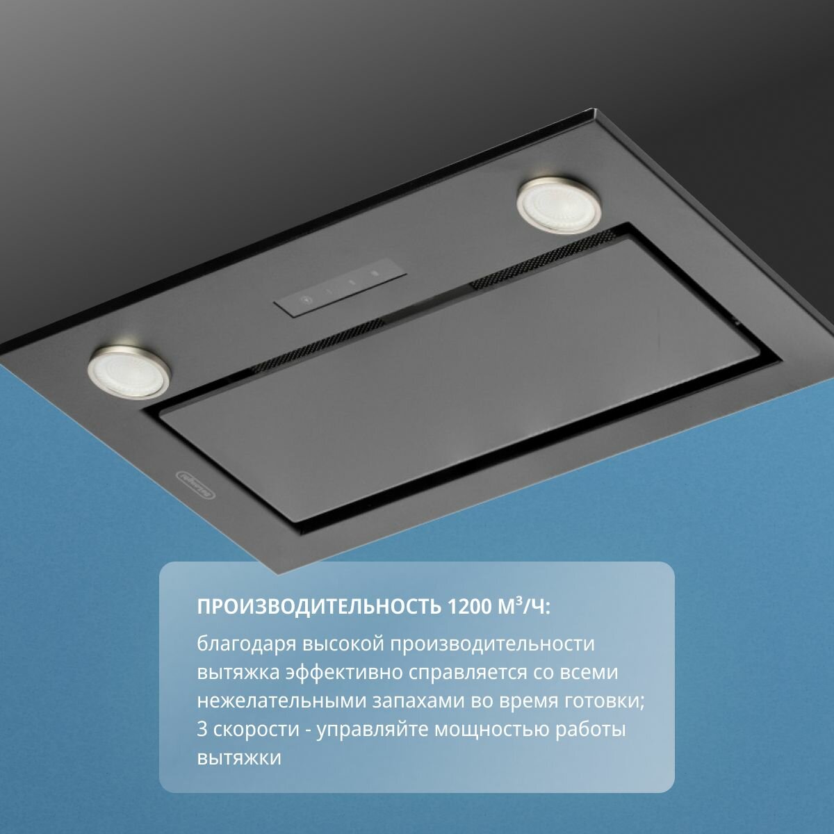 Вытяжка для кухни 52 см DeLonghi COSETTA 510 NB, 3 скорости, 1200 м3/ч, сенсорное управление, вытяжка кухонная встраиваемая