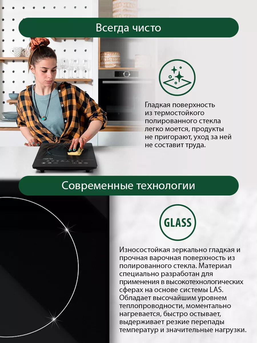 Плита индукционная электрическая MARTA MT-HP4228A безимпульсная черный жемчуг