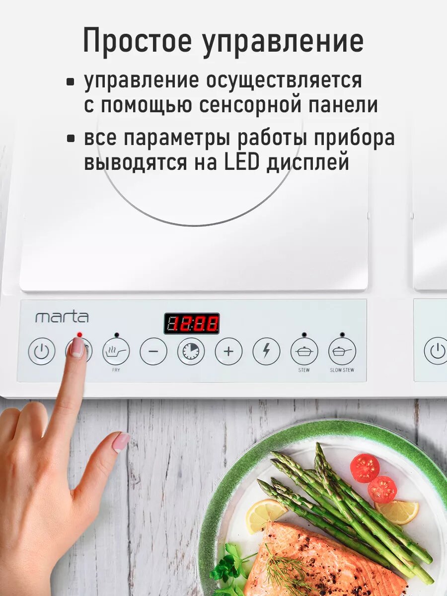 Плита индукционная электрическая MARTA MT-HP4228A безимпульсная белый жемчуг