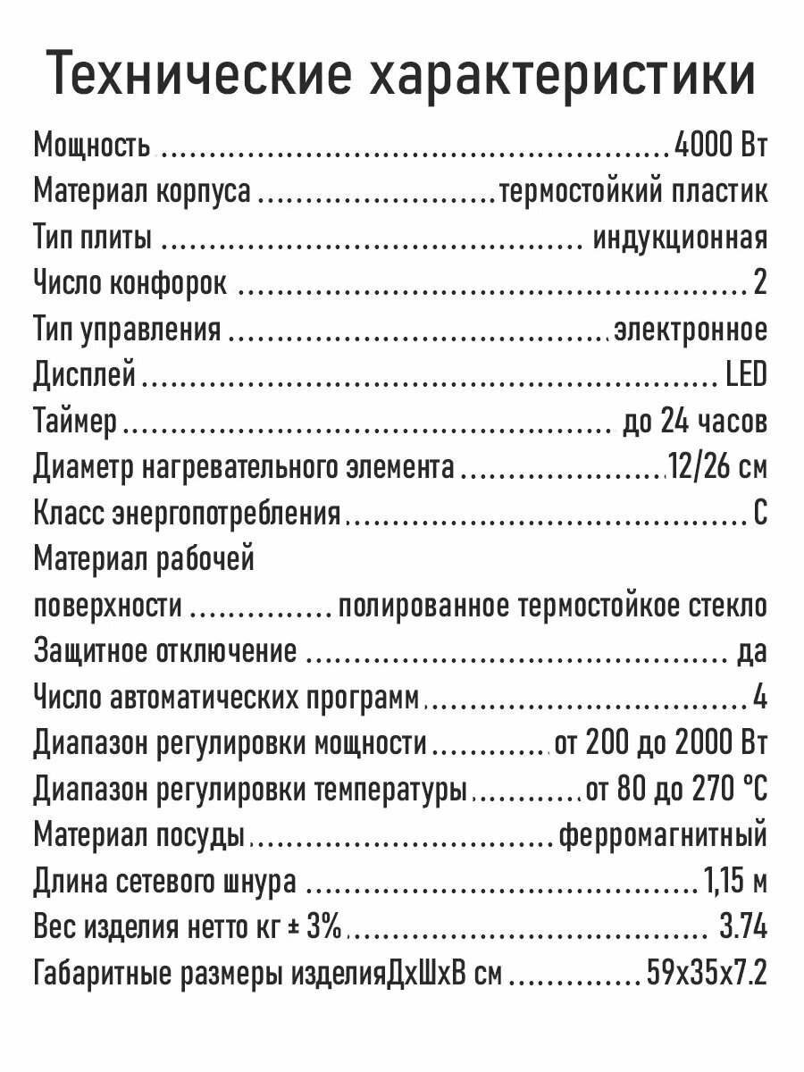 Плита электрическая, индукционная, 2 конфорки интересное: