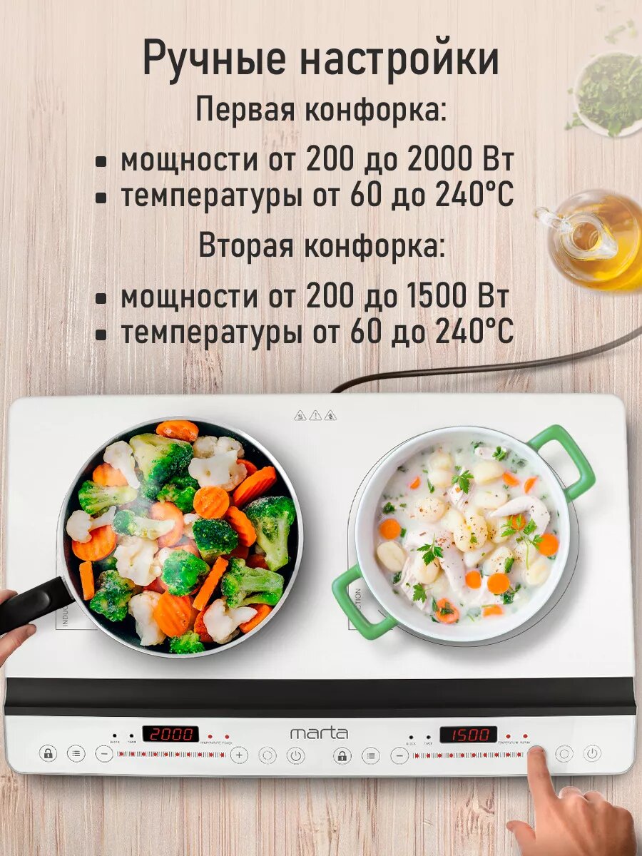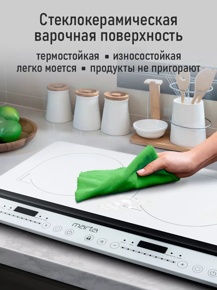 Плита индукционная электрическая MARTA MT-HP4228A безимпульсная белый жемчуг