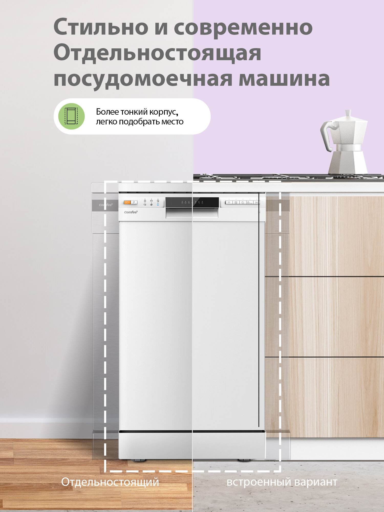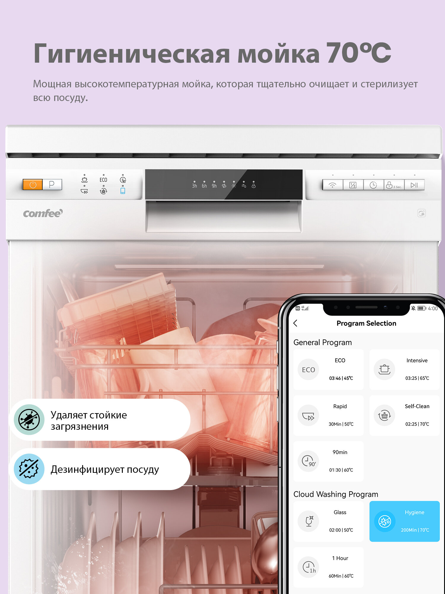 Отдельностоящая посудомоечная машина Comfee CDW452Wi, Wi-Fi управление, 6 программ, самоочистка, экспресс-мойка и сушка, половинная загрузка, отложенный старт, белый интересное: