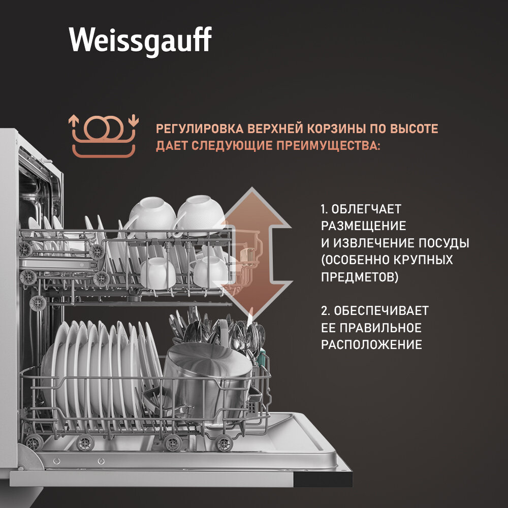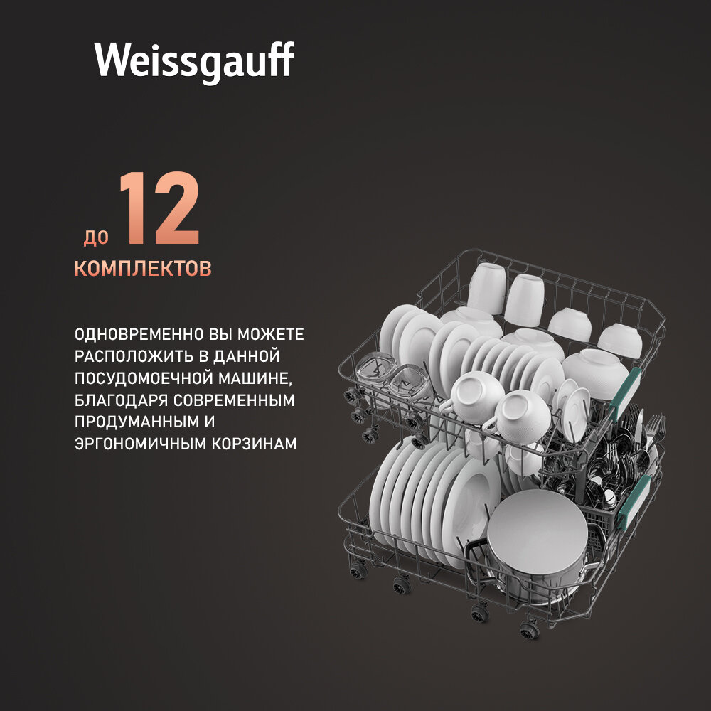 Встраиваемая посудомоечная машина Weissgauff BDW 6026, 12 комплектов посуды, половинная загрузка интересное: