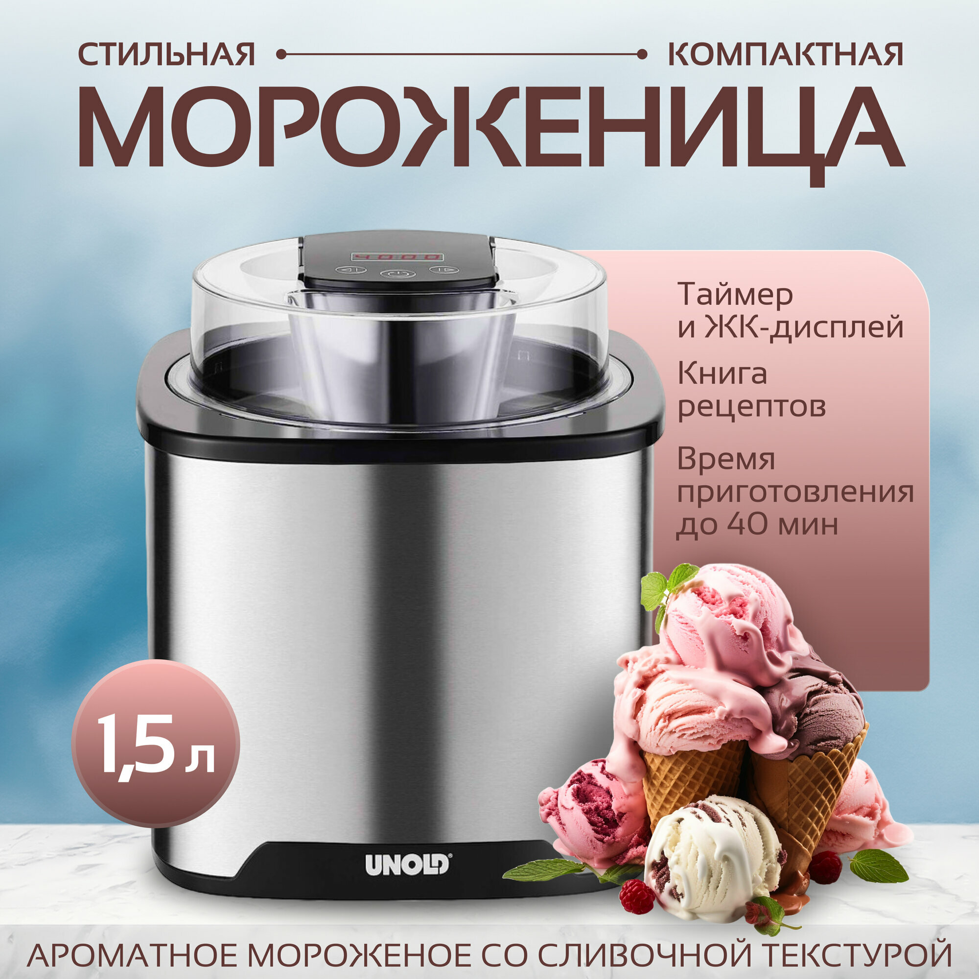 Мороженица Unold Gelato 1.5 л 12 Вт, 48855, серебристый интересное: