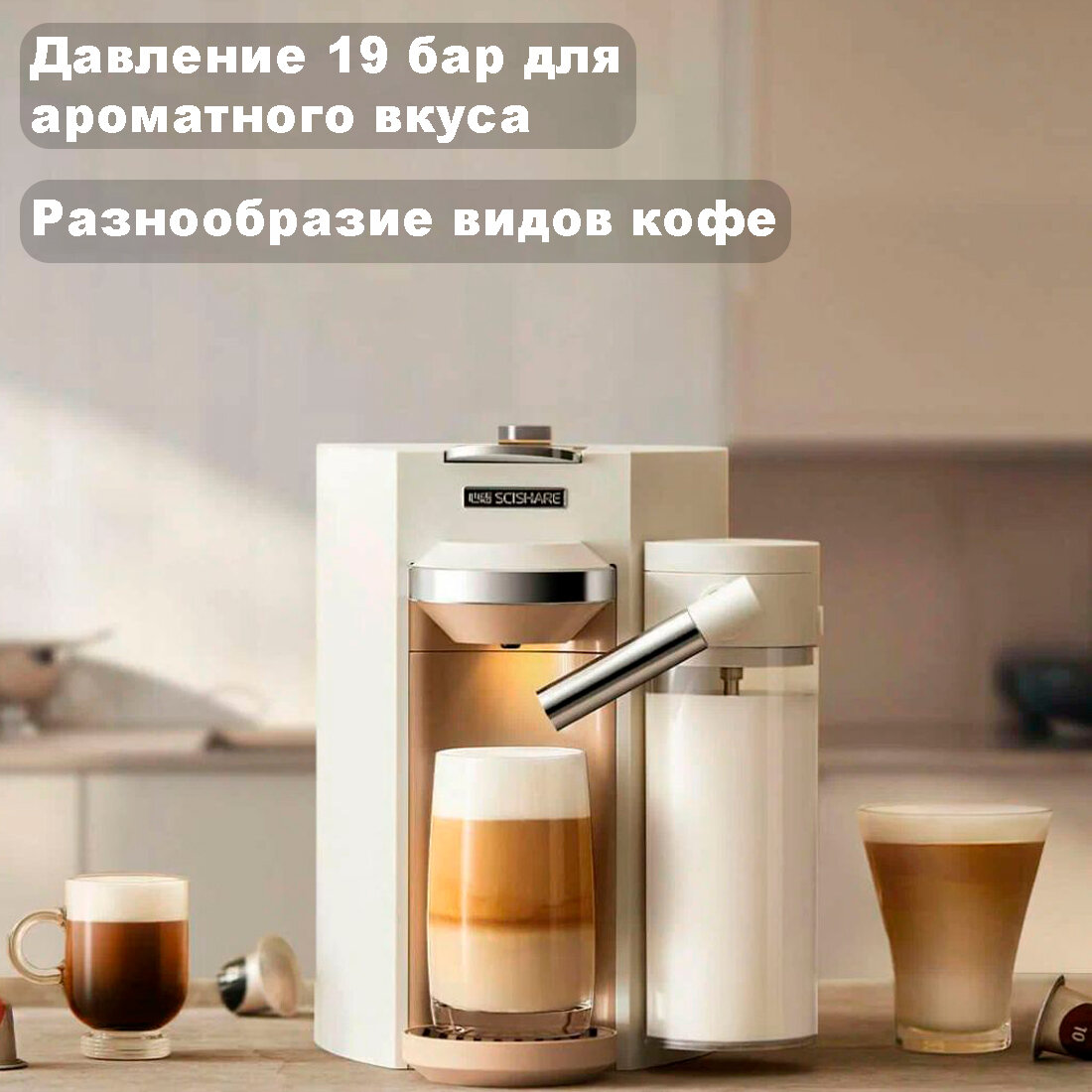 Капсульная кофемашина Scishare S1205 1500Вт, 19 бар, бежевый, капучинатор, 1700 мл резервуар для воды CN