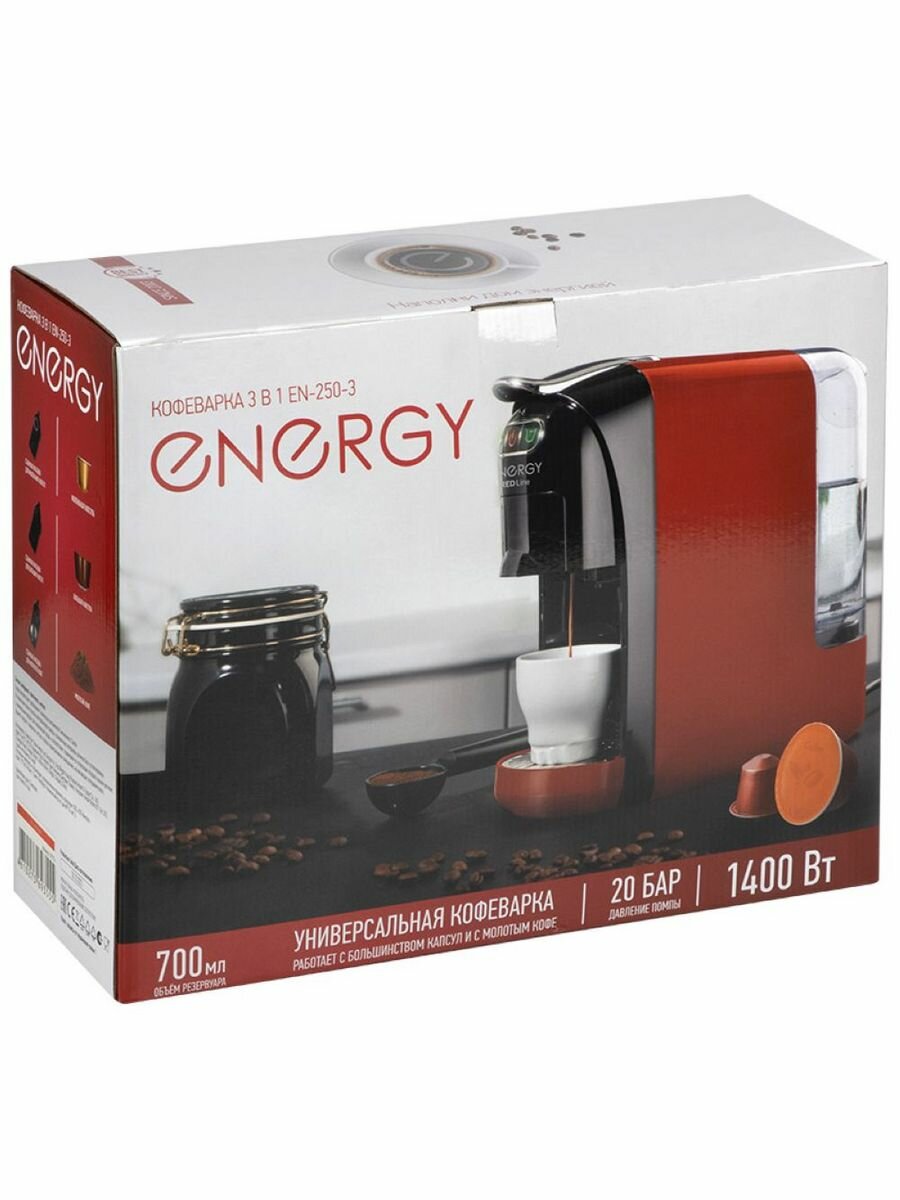 Кофеварка Energy EN-250-3, капсульная, 1400 Вт, 0.7 л, красная