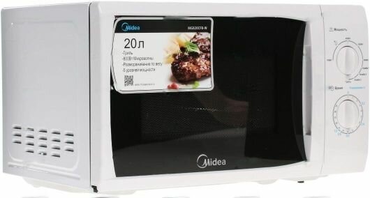Микроволновая печь MIDEA MG820CFB-W, объем 20 л, мощность 800/1000 Вт, механическое управление, гриль, белая