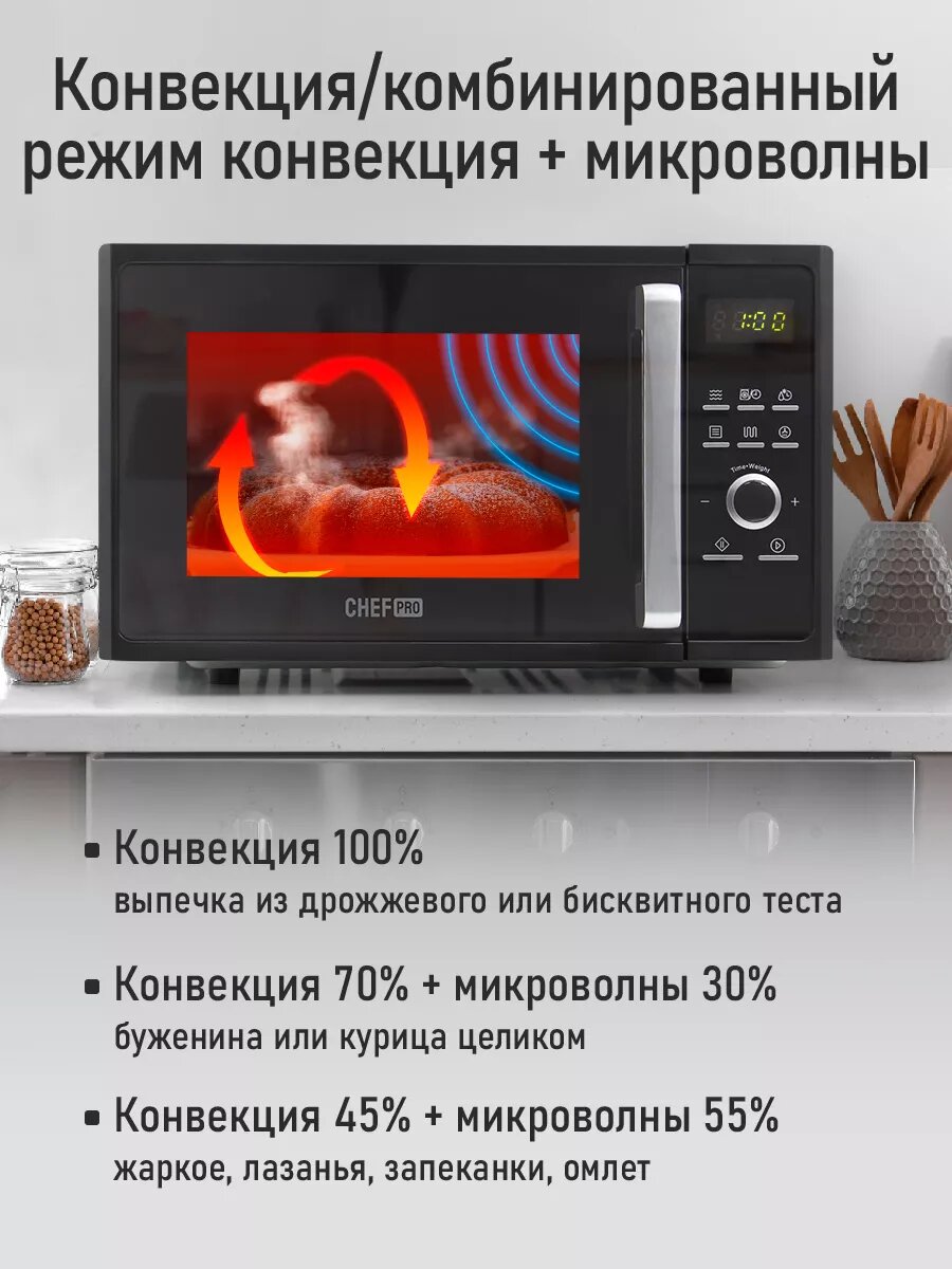 Микроволновка микроволновая печь СВЧ CHEF PRO CF-MW1954C конвекция гриль черный