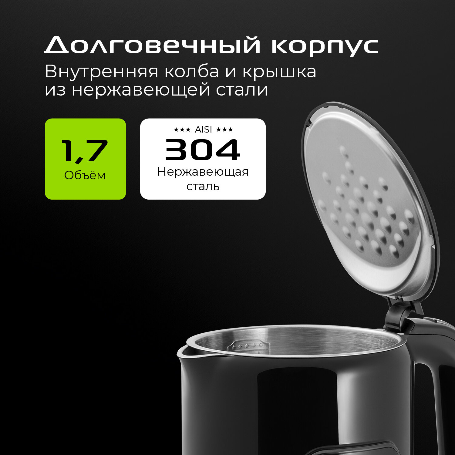Чайник электрический RED solution COLORSENSE AM120D, 2000Вт, черный