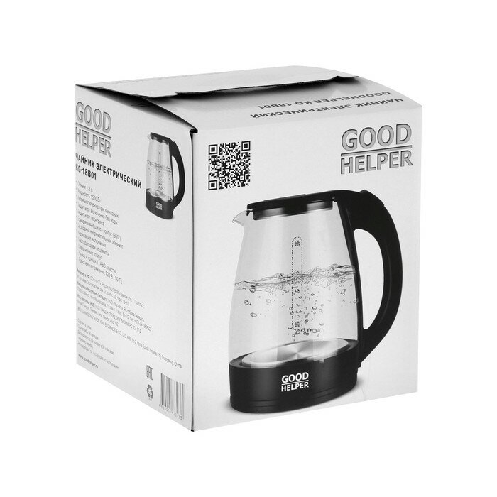 Электрический чайник GOODHELPER KG-18B01, пластик/стекло, 1,8 л, черный, с подсветкой