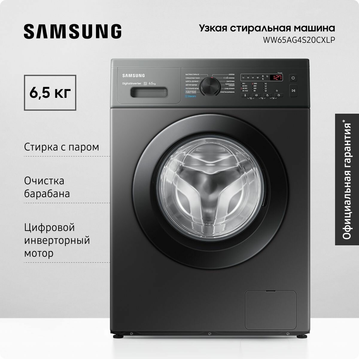 Узкая стиральная машина Samsung WW60AG4S00VELP, 6 кг, с инверторным мотором, обработкой паром, механическим переключателем, черная