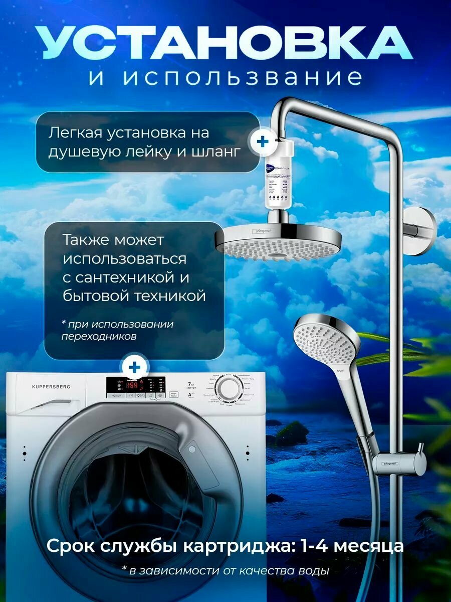 Корейский фильтр на душ, от жесткой воды, хлора и ржавчины многоразовый