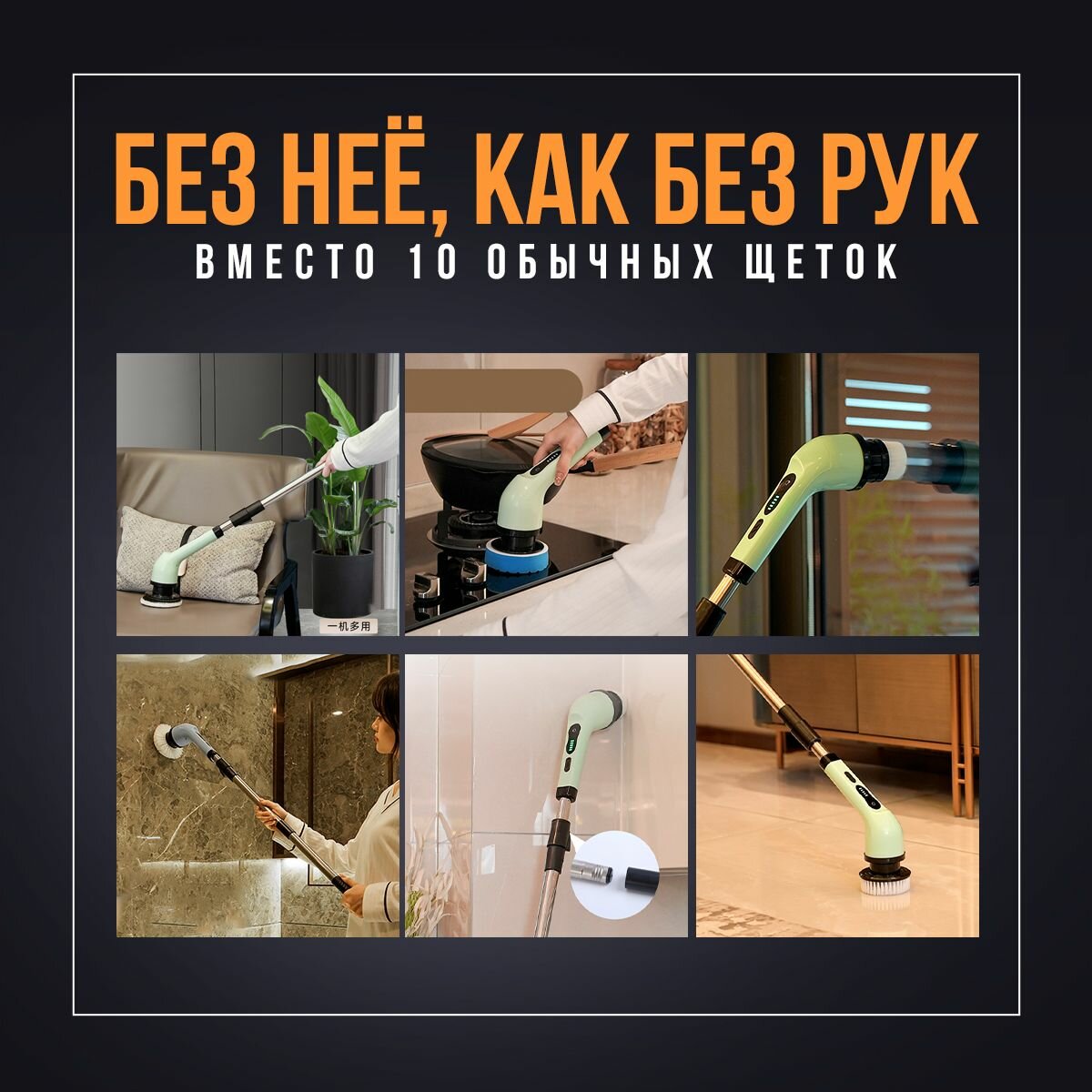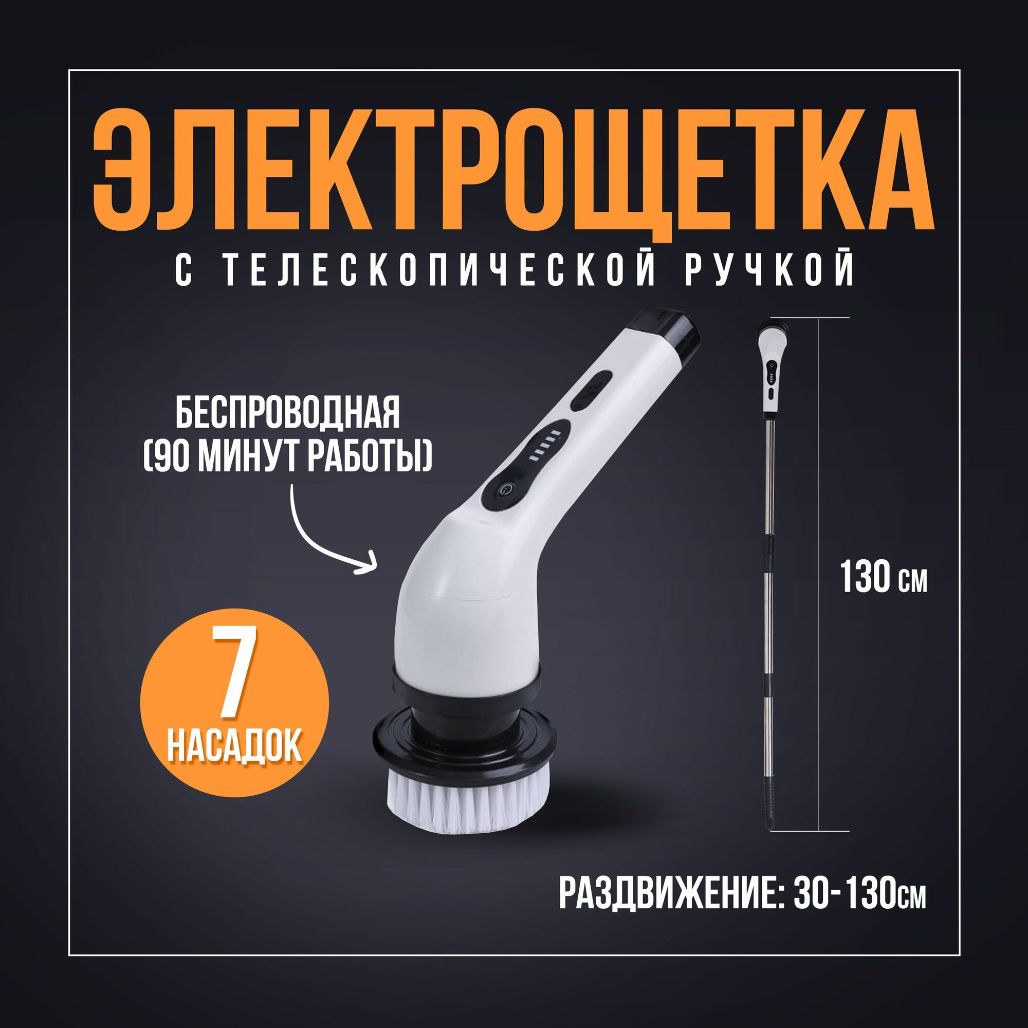 Купить Электрощётка для уборки дома! Щетка электрическая, электрощетка 7 насадок, телескопическая, беспроводная, мощная, портативная Dtsuver