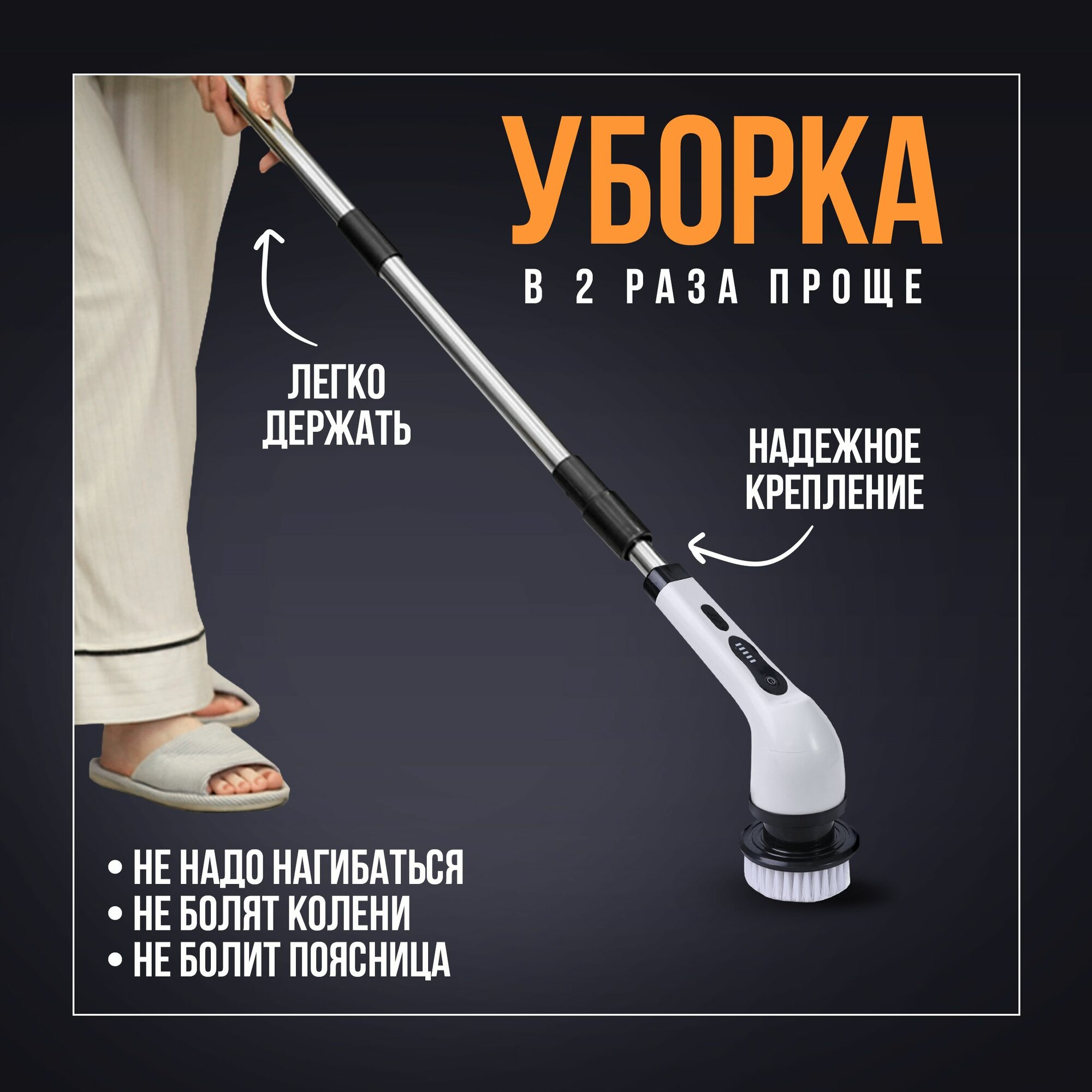 Электрощётка для уборки дома! Щетка электрическая, электрощетка 7 насадок, телескопическая, беспроводная, мощная, портативная Dtsuver интересное: