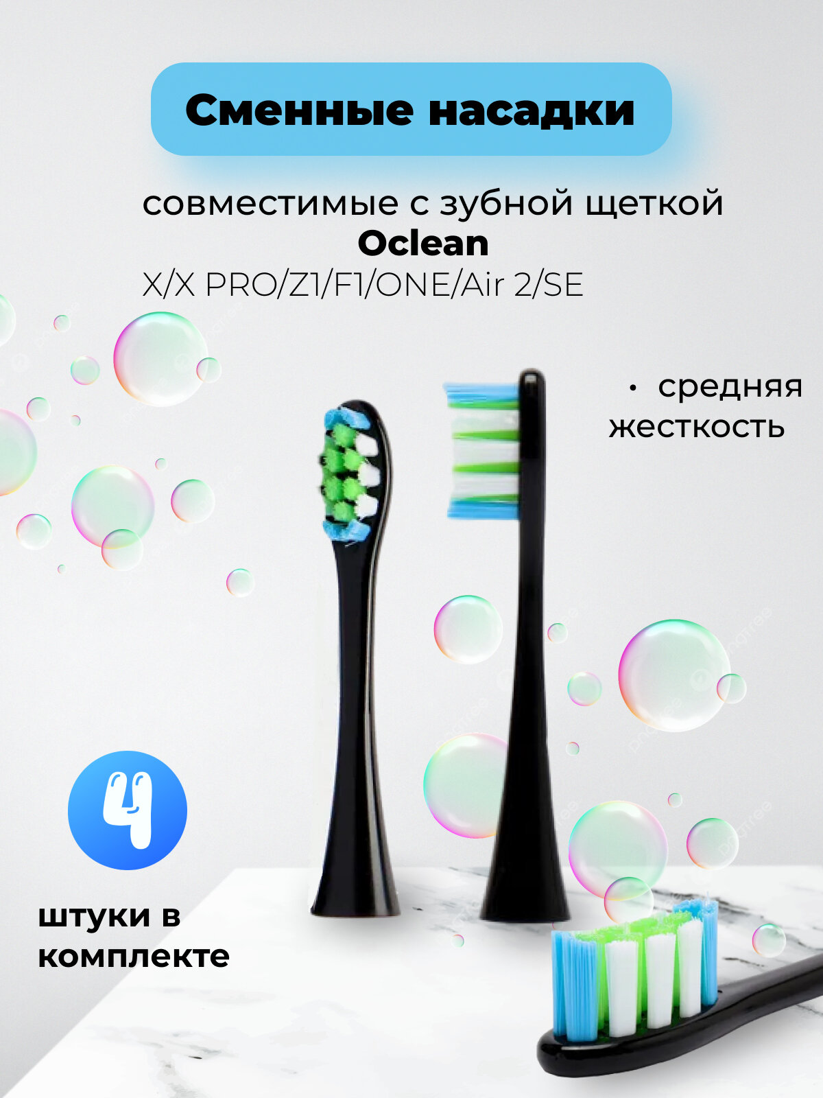 Купить Сменные насадки для зубной щетки Oclean X / X PRO / Z1 / F1 / One / Air 2 / SE черный 4шт
