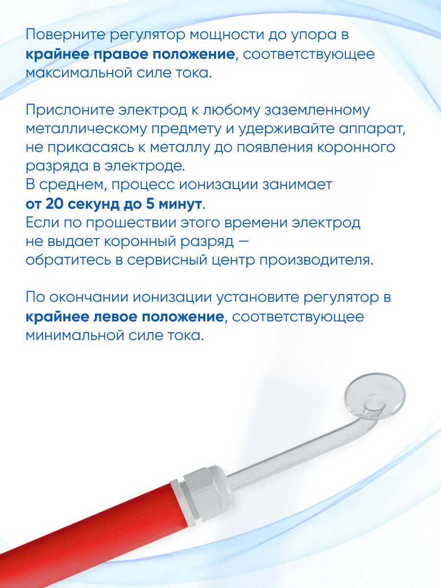 | Дополнительная информация | напряжение на электроде в рабочем состоянии, не более 30 кВ; длина корпуса аппарата 170 мм; диаметр корпуса аппарата 32 мм; длина провода электропитания 1,6 м; совместимость с насадками от аппаратов Карат, Ультратон, Корона, Искра |