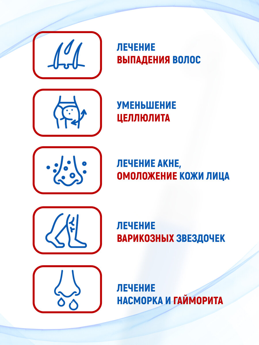 | Назначение | антивозрастной уход / антицеллюлитный уход / контроль уровня влажности кожи / лечение акне / лифтинг / массаж / моделирование фигуры / очищение / терапия заболеваний уха / улучшение состояния волос |