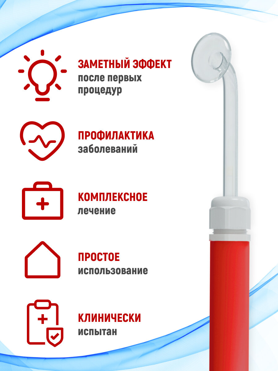 | Комплектация | - прибор; - грибовидная насадка; - гребешковая насадка; - ректальная насадка; - ушная насадка; - спинная (шейная) насадка-рогатка; - инструкция по применению. |
