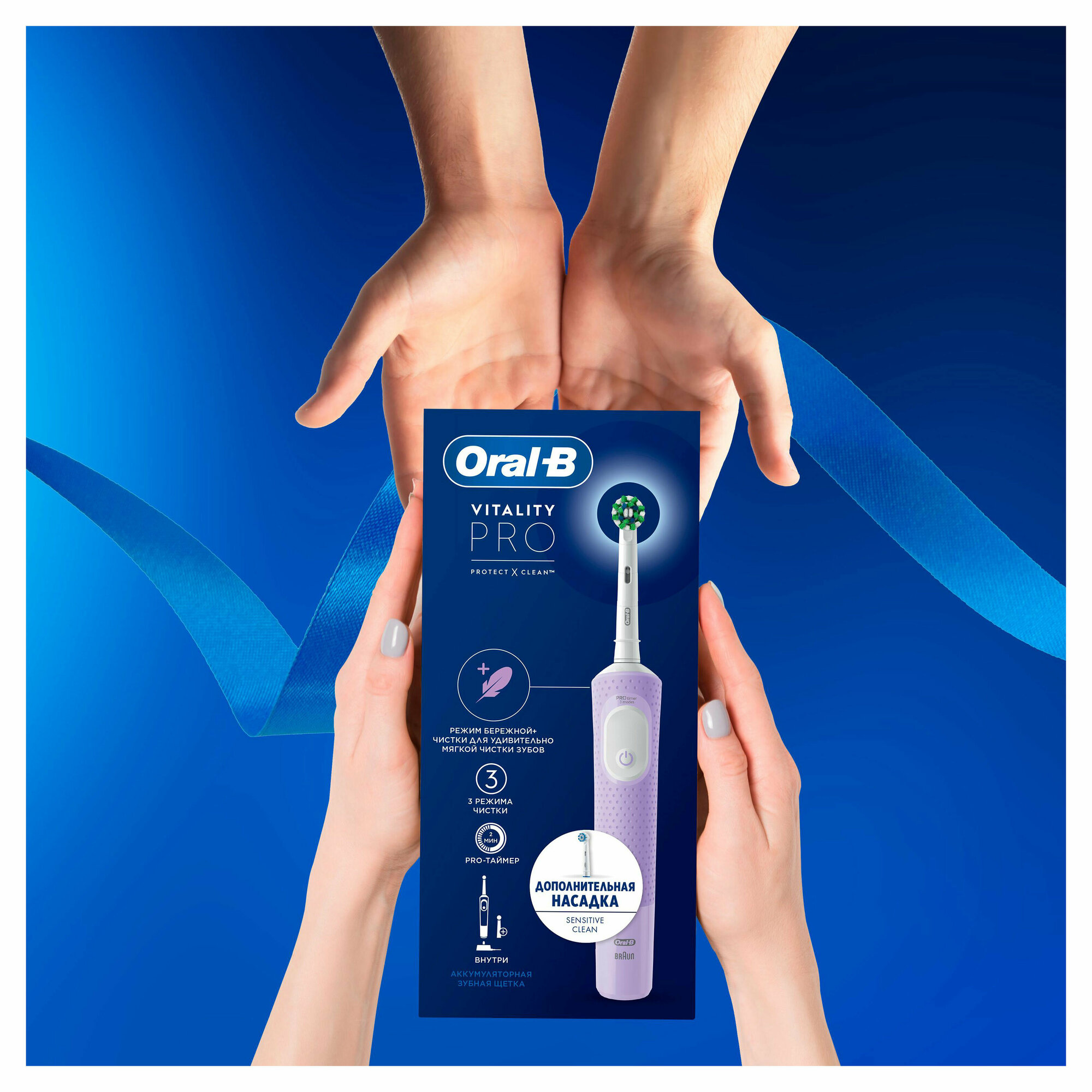 СохранитьЗубная щётка электрическая Oral-B Vitality Pro + дополнительная насадка, лиловая интересное: