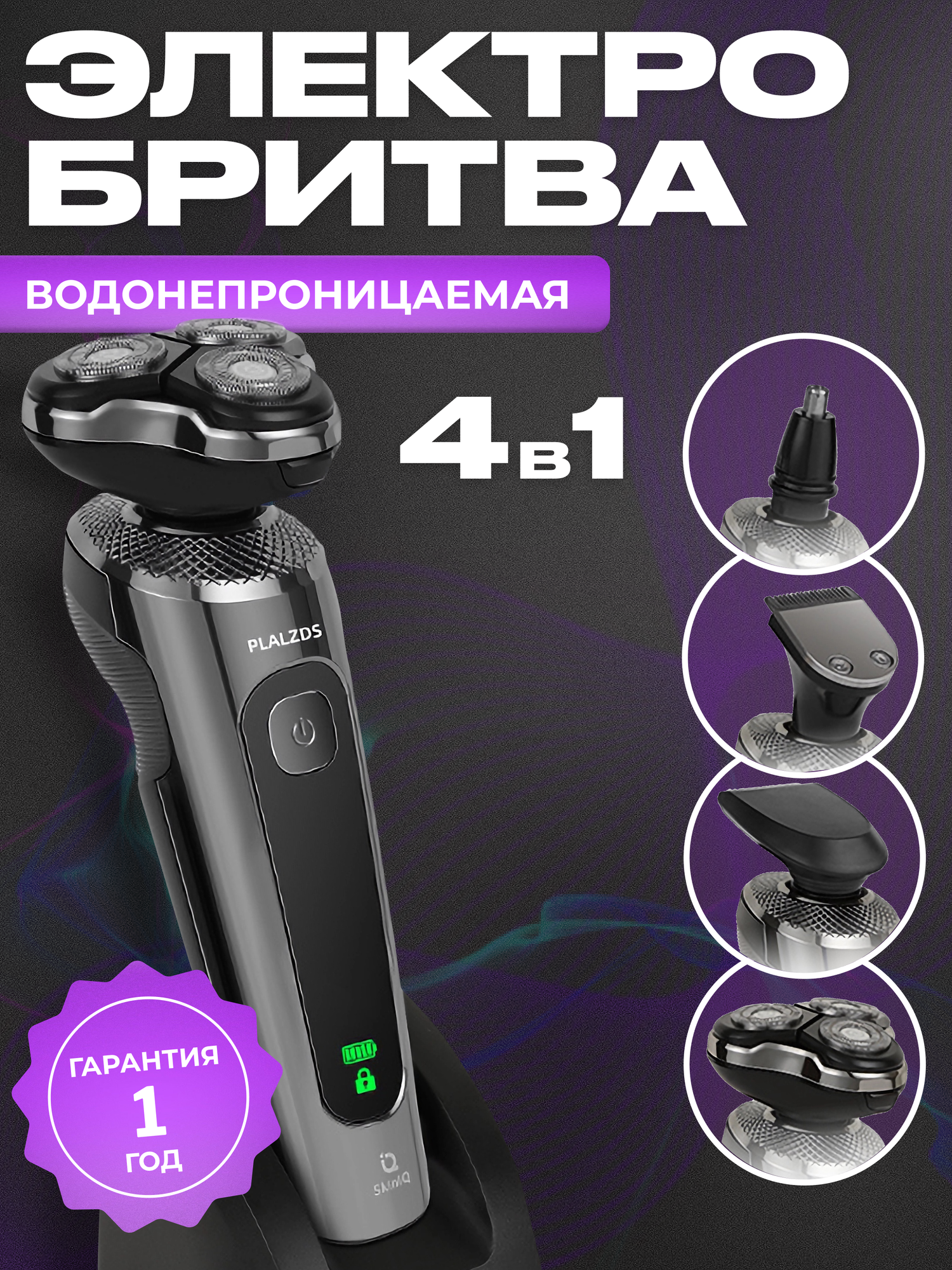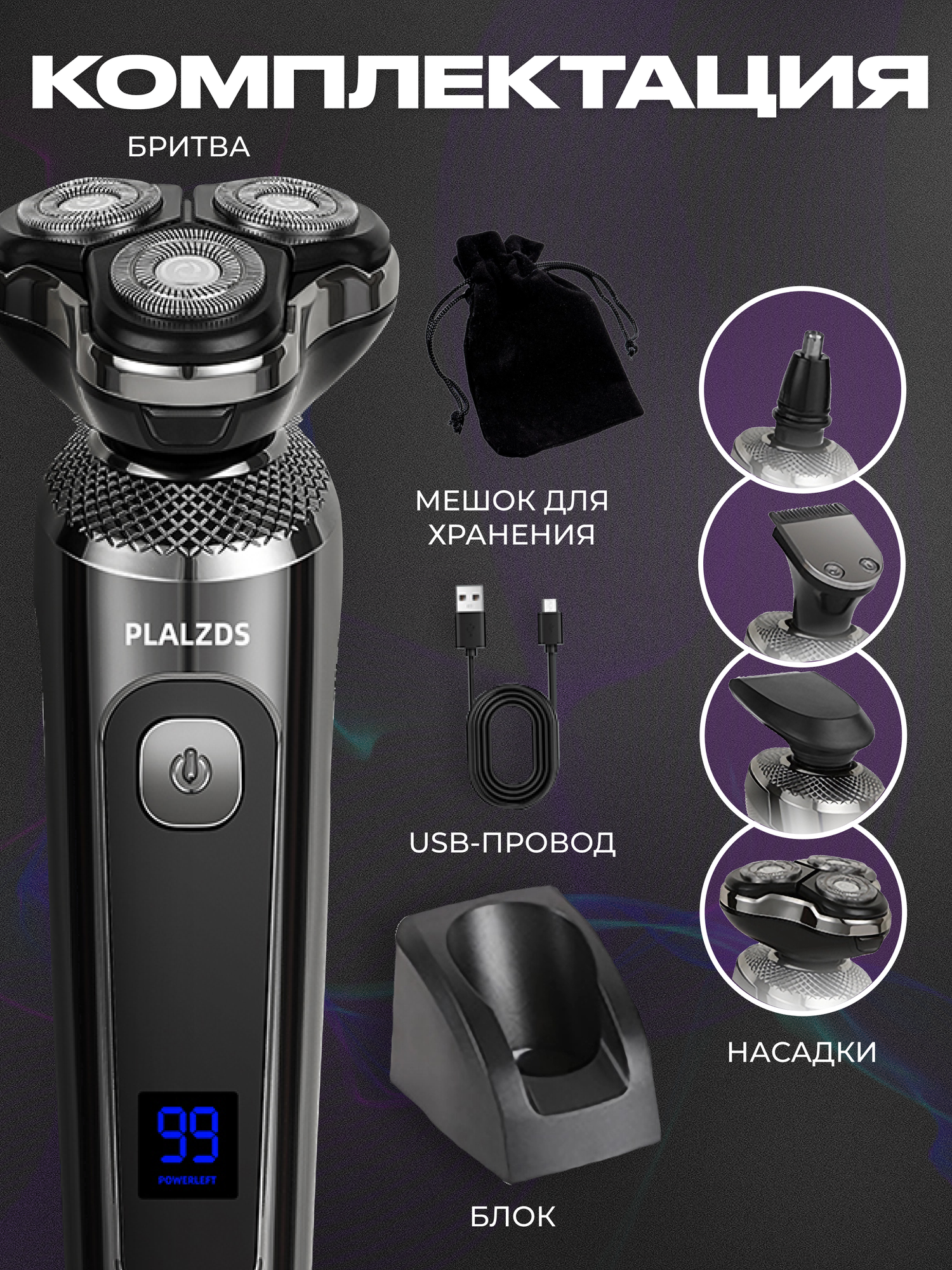 Электробритва мужская беспроводная с насадками, электрическая бритва 4 в1, триммер, машинка для стрижки, шейвер интересное: