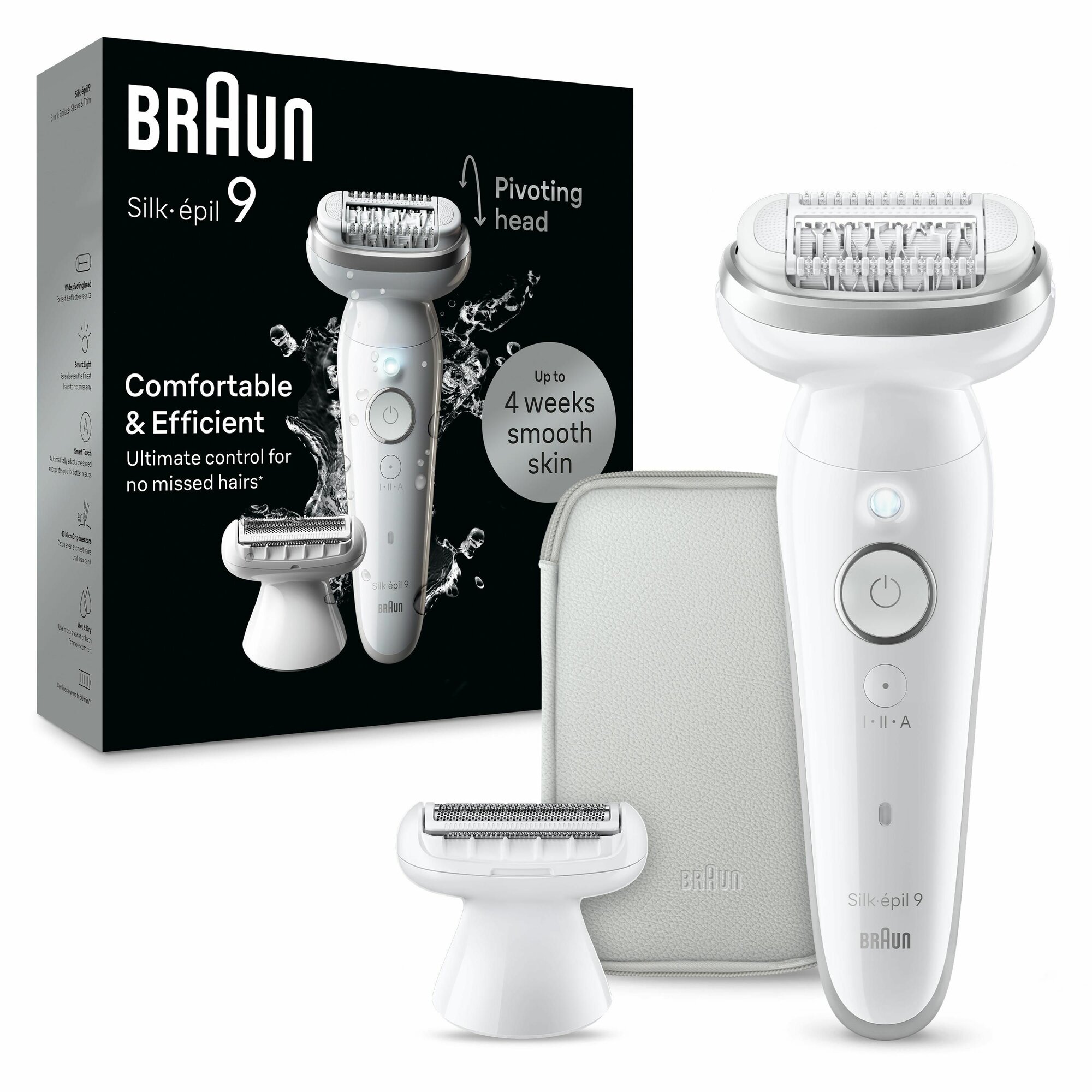 Braun Silk-Epil 9 - эпилятор для тела и зоны бикини с насадками и массажером