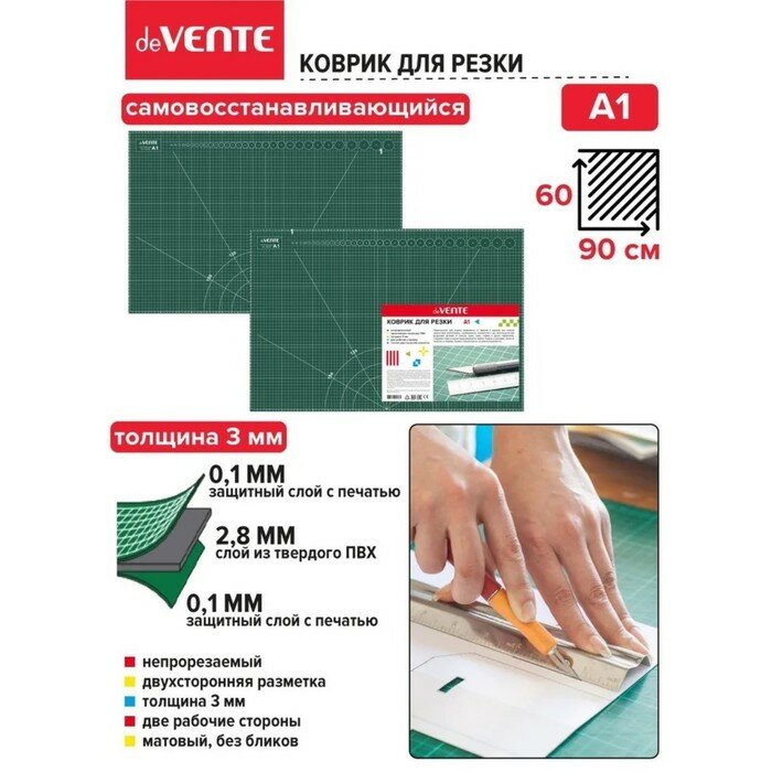Коврик для резки deVENTE Двухсторонний, трехслойный, A1, 90х60 см, толщина 3 мм интересное: