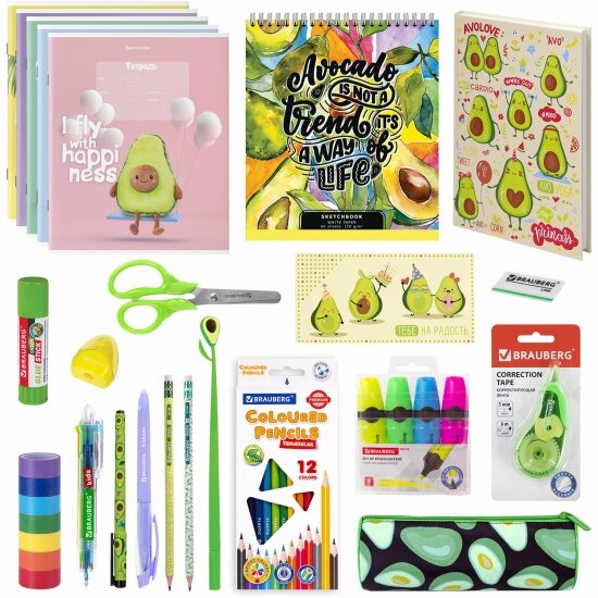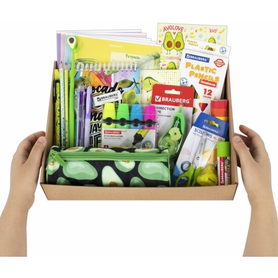 Подарочный набор канцелярии для школьника Brauberg Avocado, 43 предмета, универсальный, 18 наименований, 880951