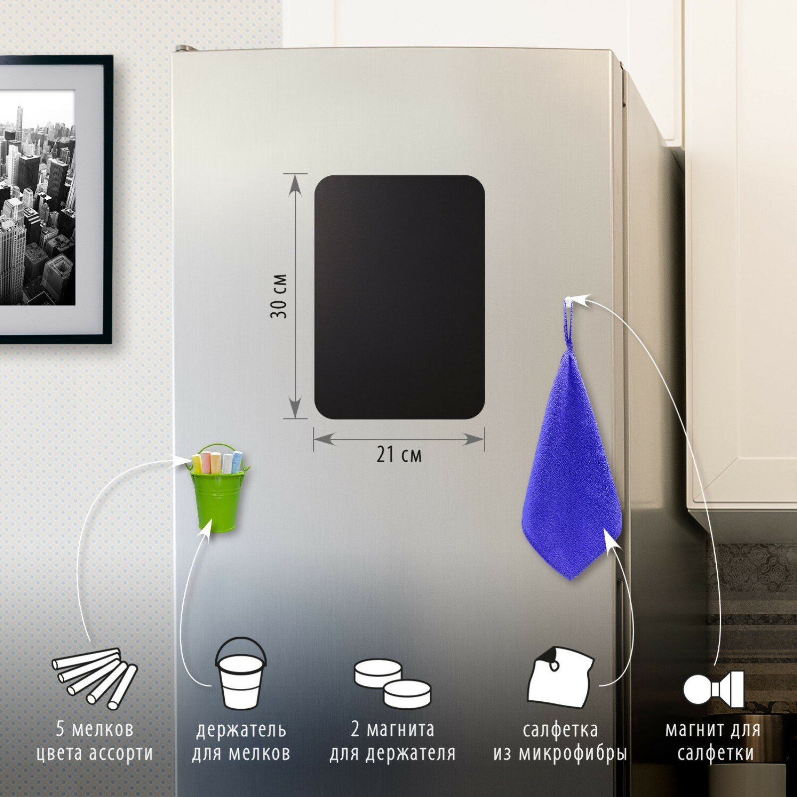 Доска на холодильник магнитно-меловая 30х21см с мелками, магнитом и салфеткой, BRAUBERG, 237843 интересное: