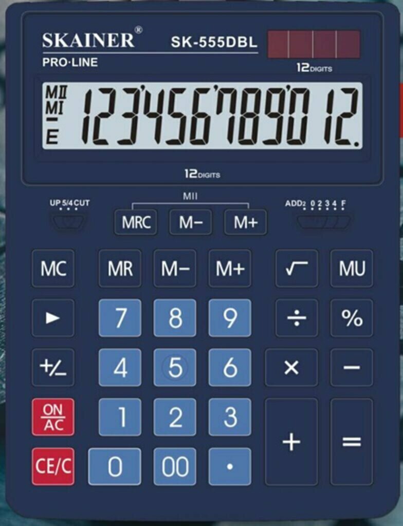 Купить Калькулятор 12 разр. Skainer настольный двойное питание синий (аналог Casio GR-12 )