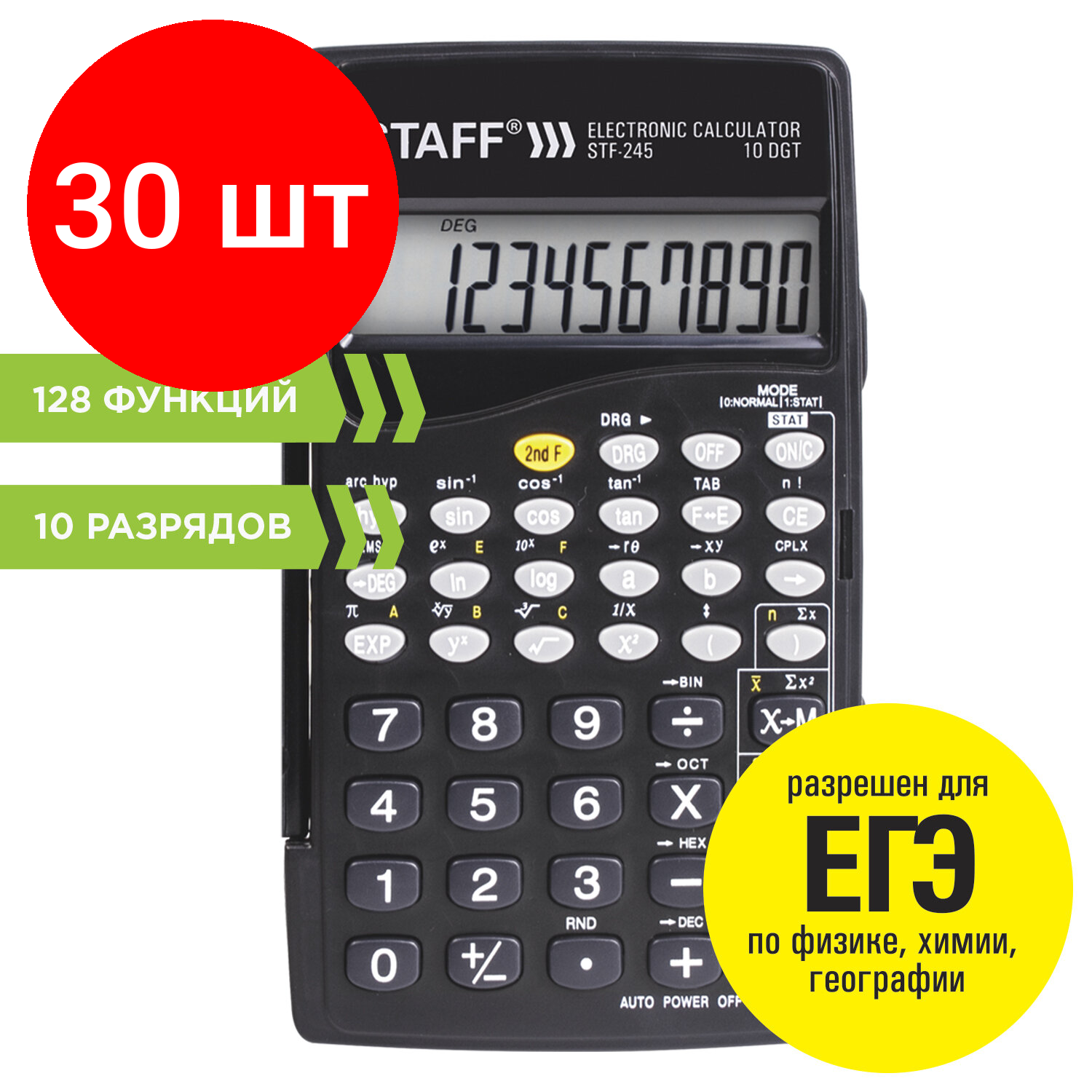Купить Комплект 30 шт, Калькулятор инженерный STAFF STF-245, компактный (120х70 мм), 128 функций, 10 разрядов, 250194